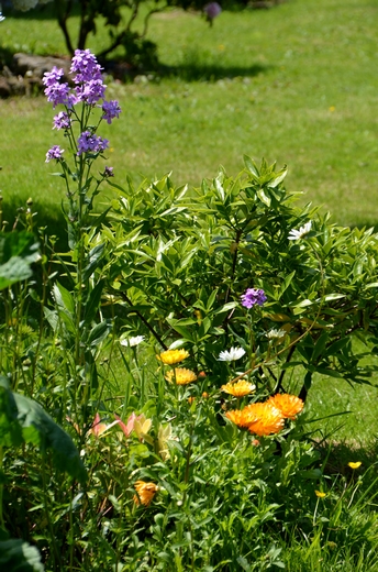 | Fleurs du jardin ou plutôt fleurs des champs quand la maison est au milieu des prés, fleurs sauvages... en liberté ! Bien sûr on voudrait dompter un peu la nature et donner au jardin des airs "civilisés" mais la bambi se moque bien de tout cela, elle vient brouter ce qui lui semble appétissant, difficile de lui faire comprendre que les fleurs sont pour nous, pas pour elle, elle ne l'entend pas de cette oreille. Quant aux mauvaises herbes, elles ont la vie belle et tant d'espace à envahir! Bref on n'est pas près de vous présenter un jardin à la française... Le petit moineau de l'en-tête est une photo de Pol. Les photos ont été prises le 2 et le 3 juin 2013 Cliquez sur les images pour faire un tour de jardin -> l v | |