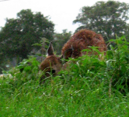 Bonne soirée Bambi, nous retournons à nos occupations et ne fais pas semblant de t'éloigner parce que le déclencheur de mon appareil photo t'a effrayée... C'est promis, je le réglerai sur "silencieux" la prochaine fois pour ne pas te perturber dans ton repas.